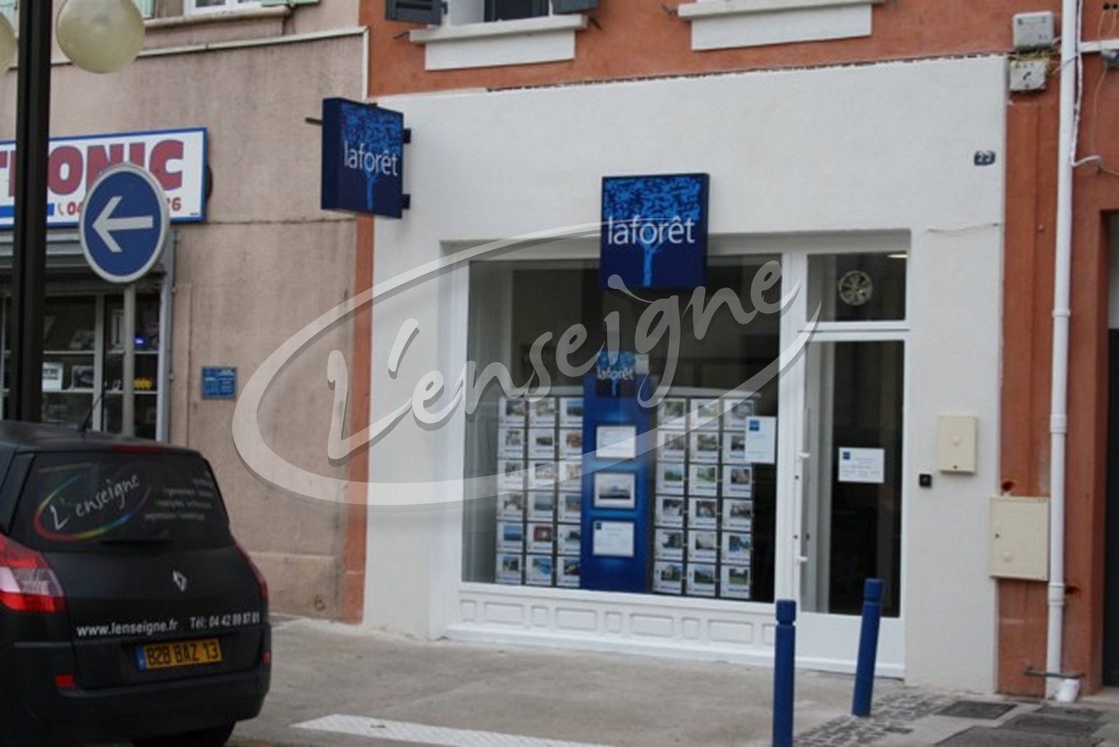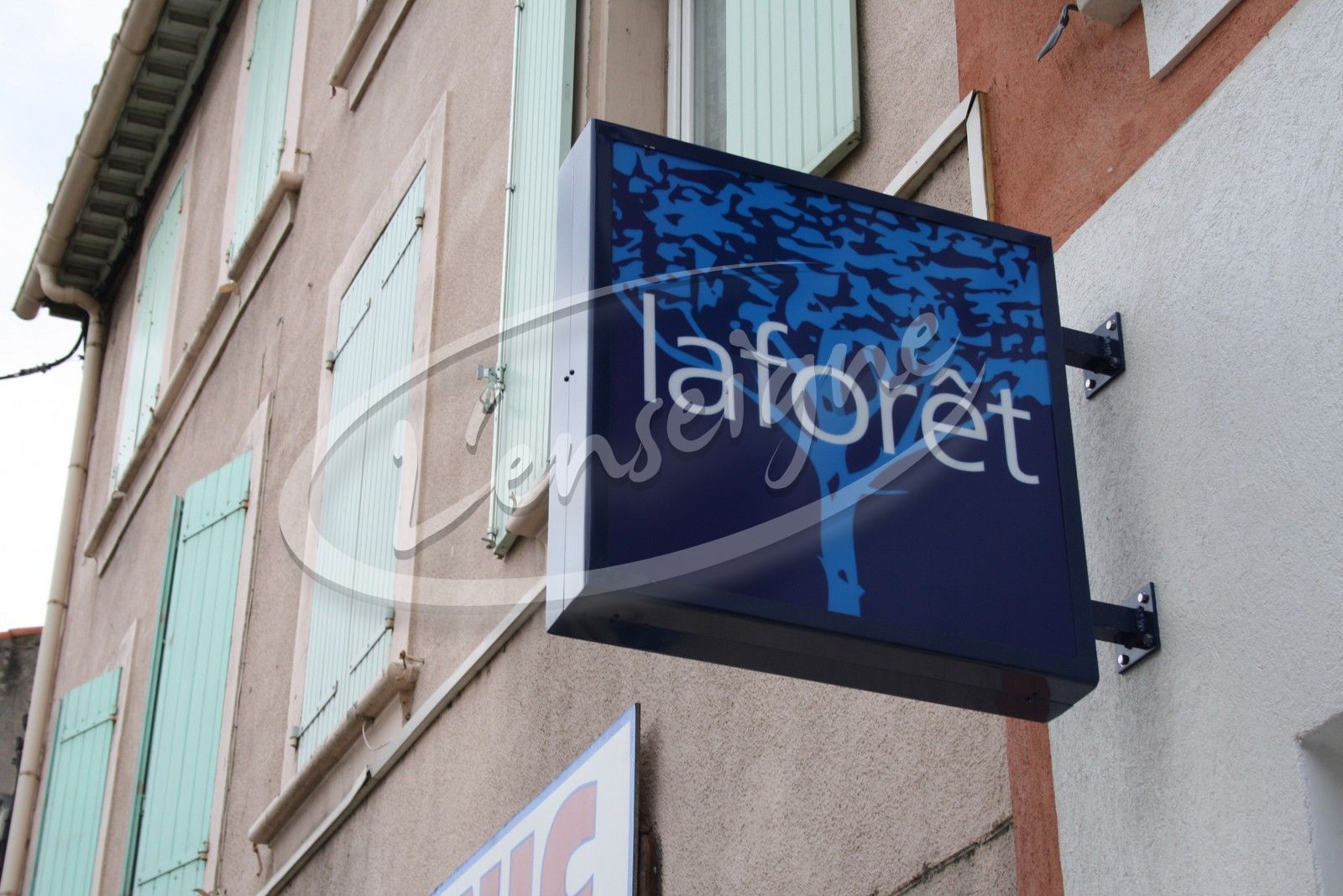 Pour l'agence immobilière La Fôret à Martigues, L'Enseigne a réalisé deux caissons lumineux avec faces en plexiglas et visuels en adhésif numérique.