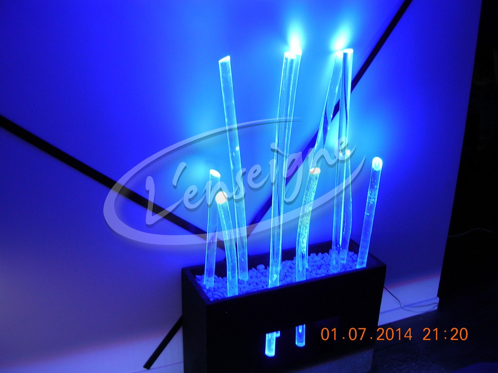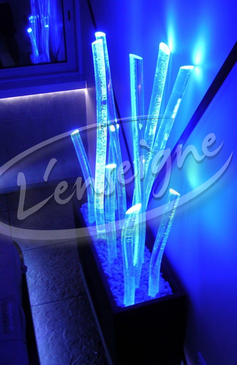 Cette décoration design a été créée pour un particulier, un objet déco sur mesure faisant penser à une jardinière. Elle est réalisée avec des tubes de plexiglas.