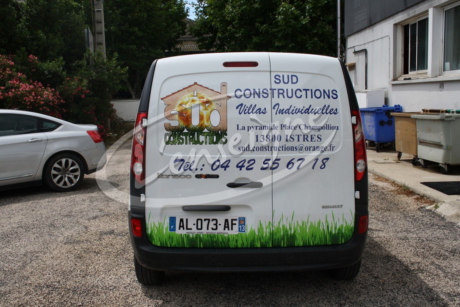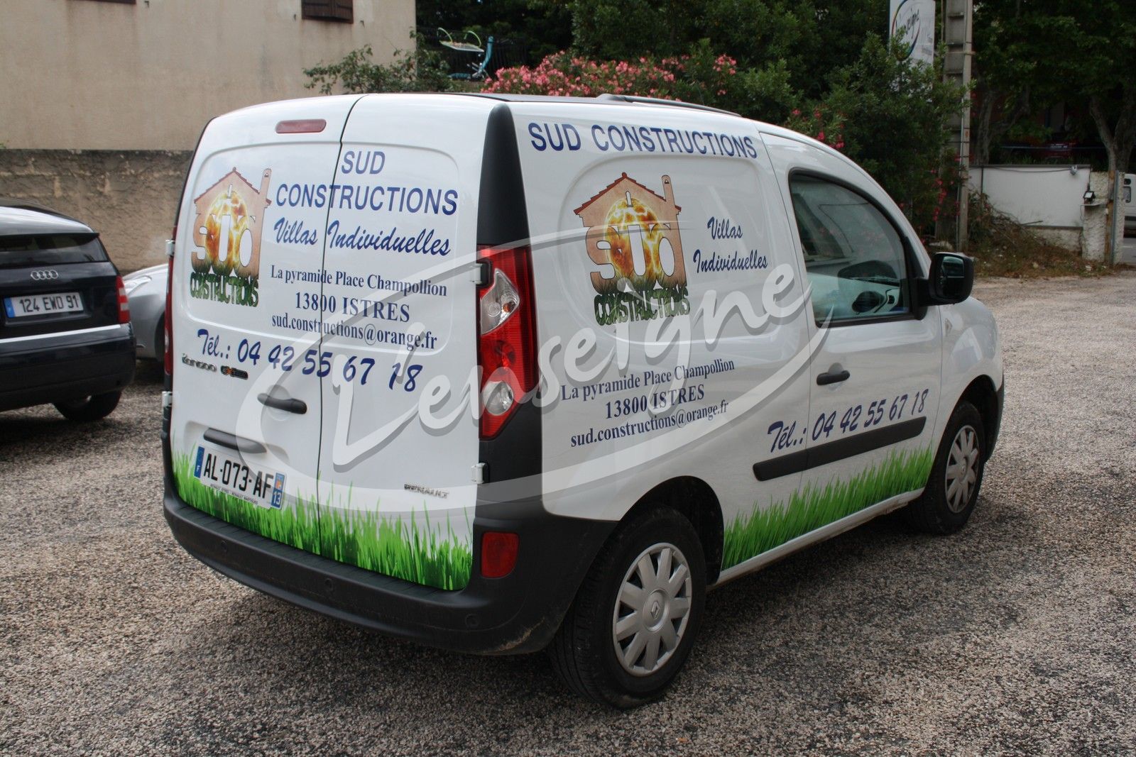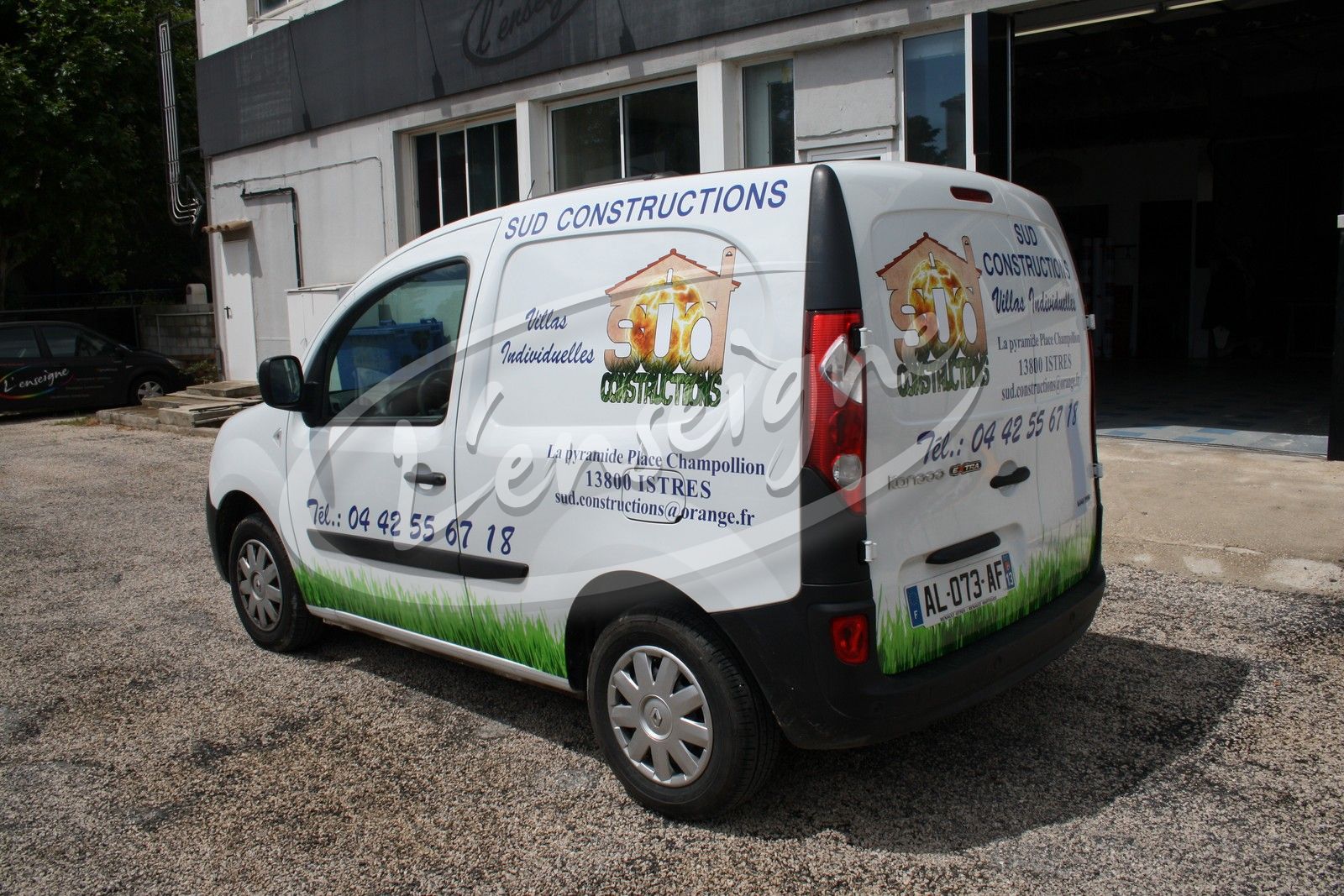 L'Enseigne à Martigues vous présente cette décoration publicitaire de véhicule effectuée pour la société Sud Construction à Istres.