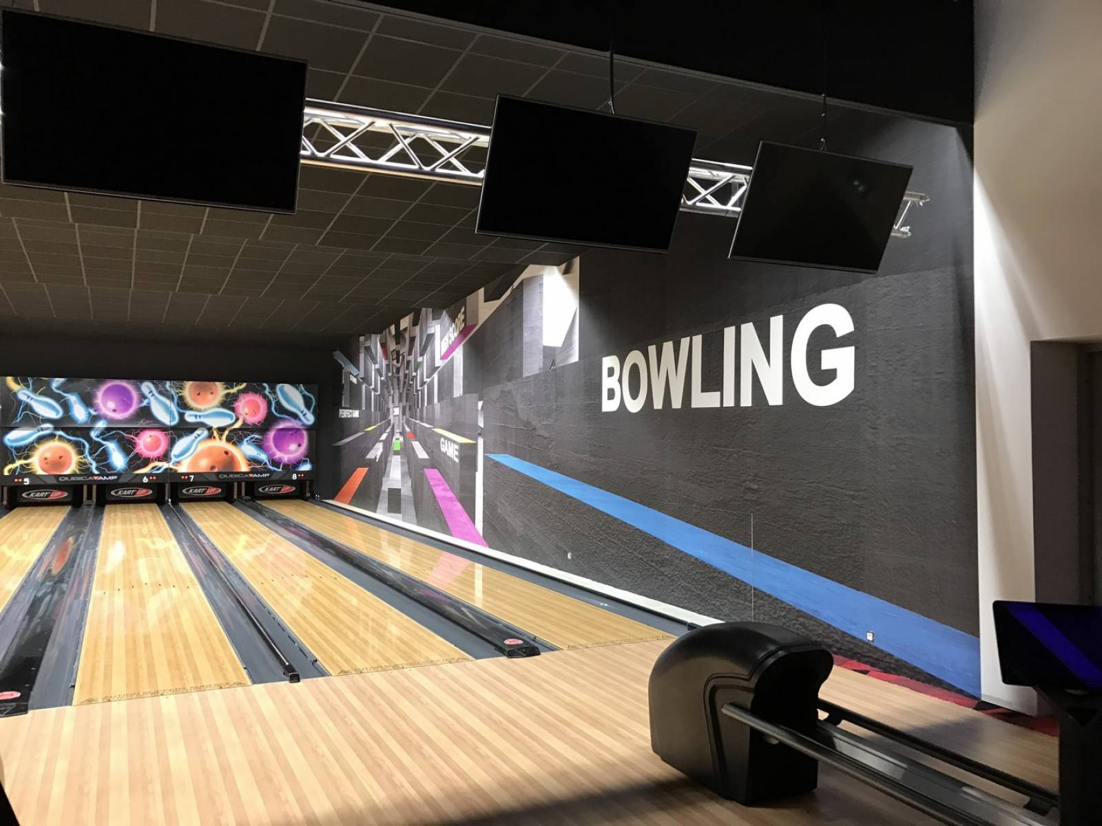Le Bowling Kart'Up situé à Vitrolles a confié à L'Enseigne la réalisation de leur décoration intérieur.
