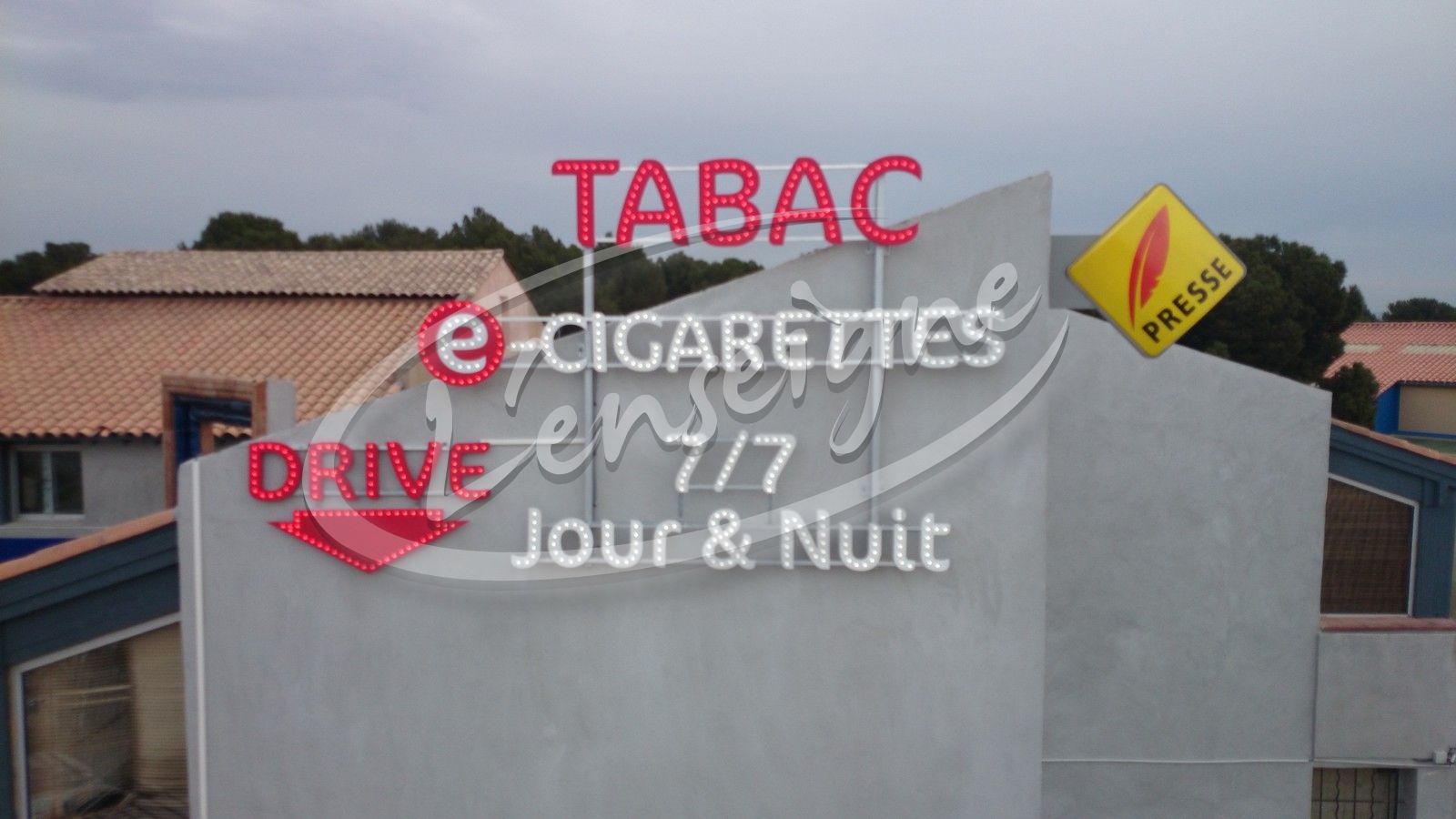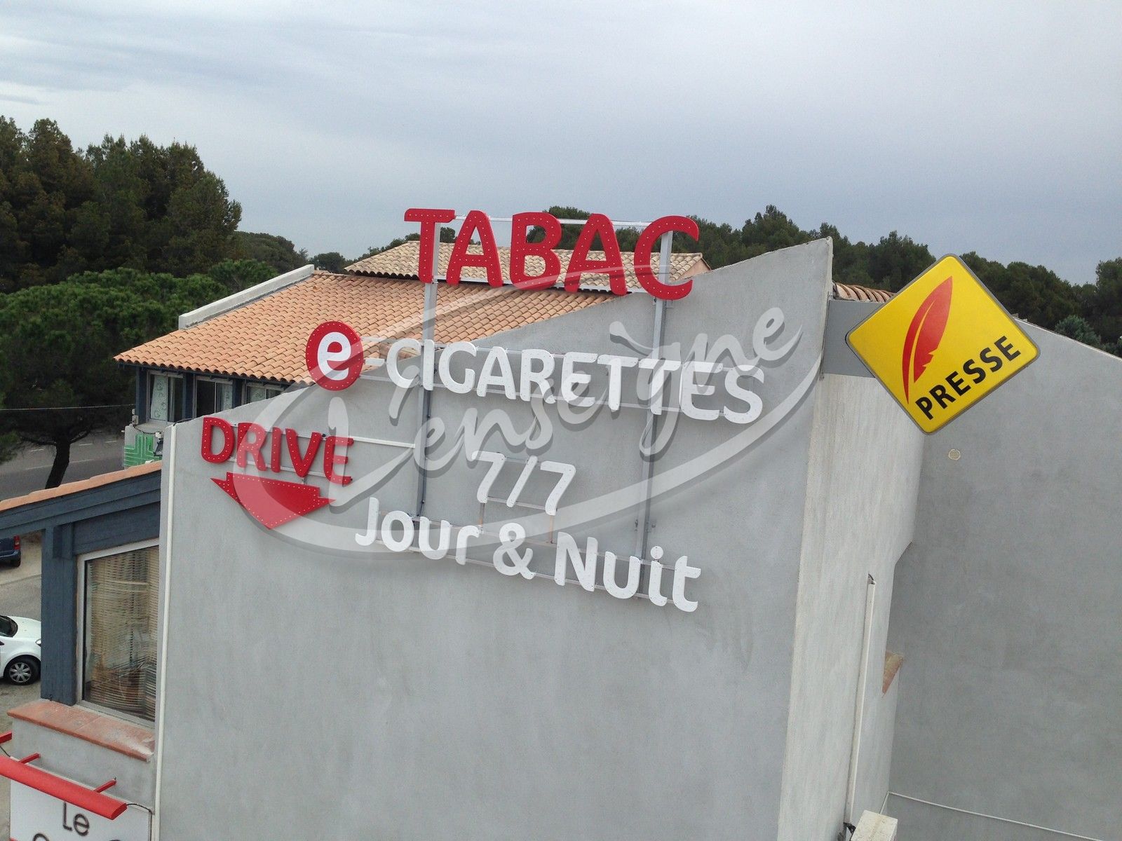 L'Enseigne a fabriqué et installé sur cette façade des lettres individuelles à leds très lumineuses pour le tabac presse Le Cohiba à Lambesc. Cette enseigne a été installé sur une structure en aluminium avec un camion nacelle tout en haut de la façade pour une visibilité optimale.