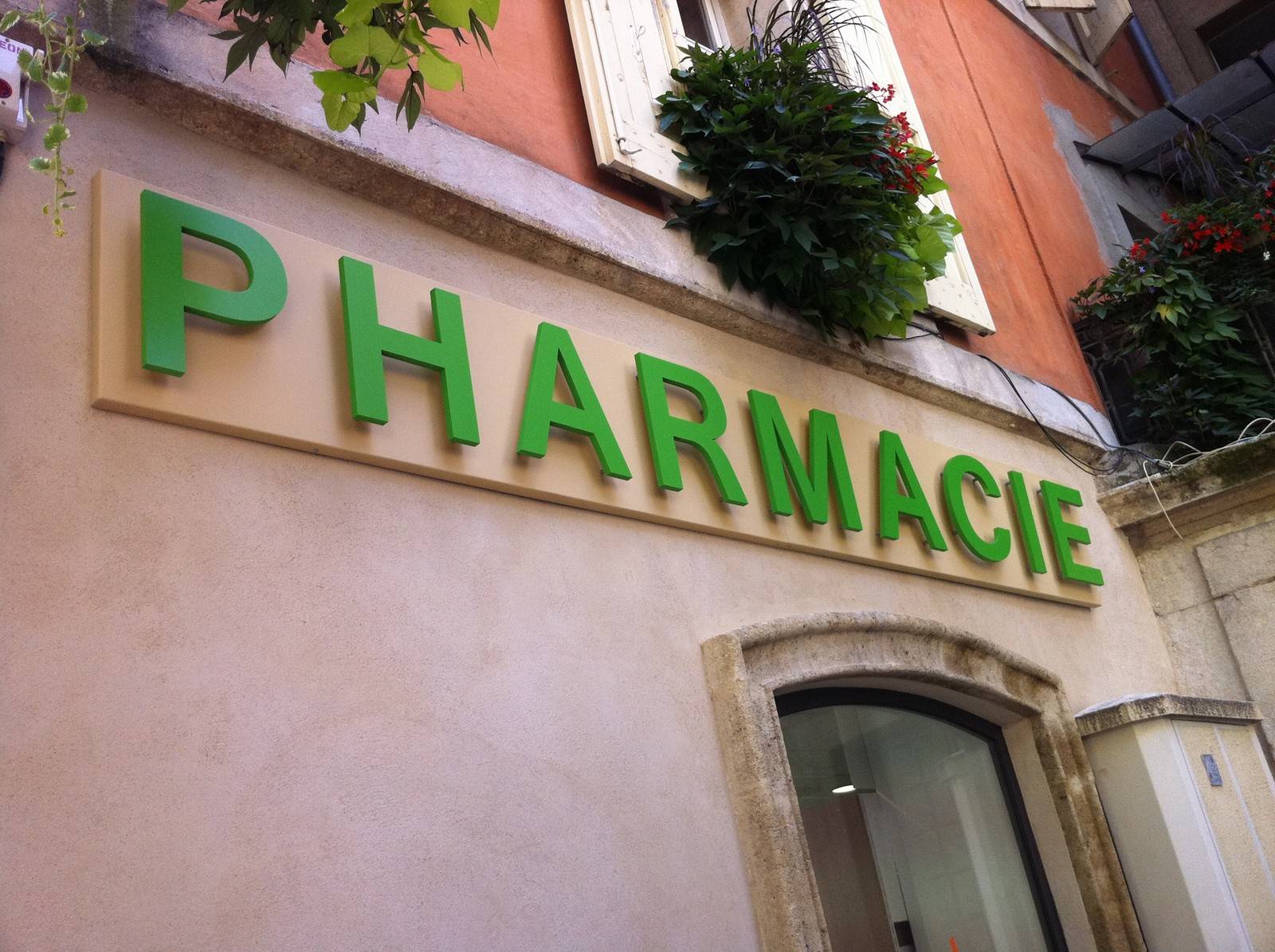 La Pharmacie de Manosque a confié à l'Enseigne la réalisation de l'ensemble de son projet de communication pour l'extérieur et l'intérieur de sa pharmacie comprenant la fabrication et la mise en place d'une enseigne avec des lettres reliefs et des bandeaux intérieurs.
