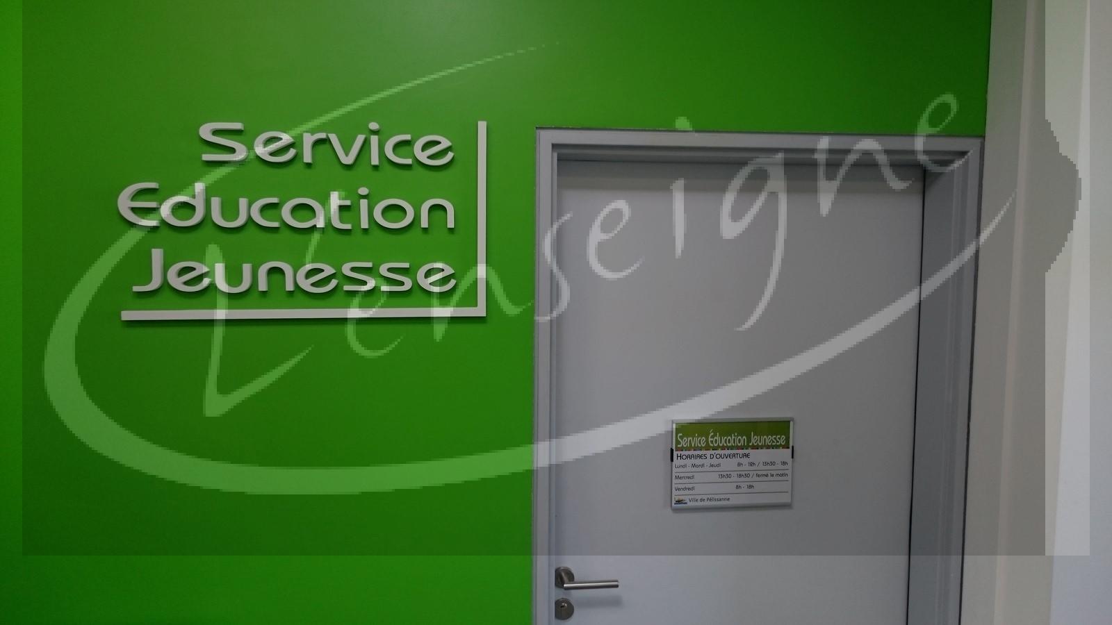 Pour l'accueil de loisirs Jean Paul Houlié, la Mairie de Pélissanne nous a confié la réalisation de l'enseigne et la signalétique intérieure et extérieure.