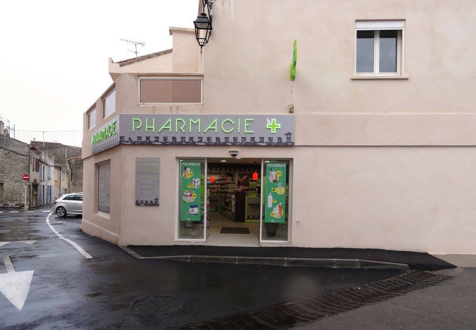 Enfin, nous avons opté pour un covering apposé sur la face avant de la pharmacie mais également sur le côté pour assurer une double visibilité.