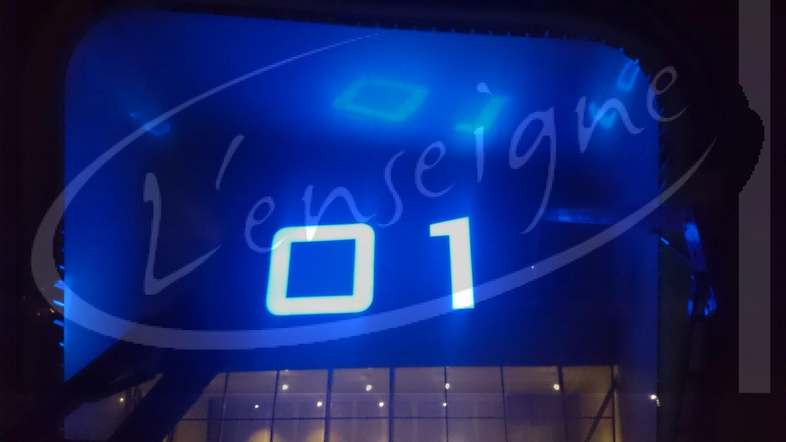 La numérotation des portes sont des chiffres en aluminium avec faces en plexiglas coloré appelées aussi lettres baignoires lumineuses.