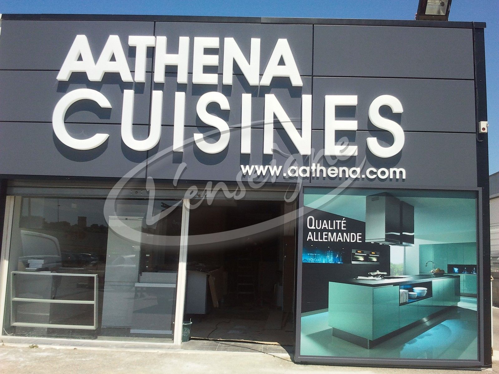 La societé L'ENSEIGNE a réalisé la fabrication et l'installation d'un habillage de façade chez ce cuisiniste à Istres.
