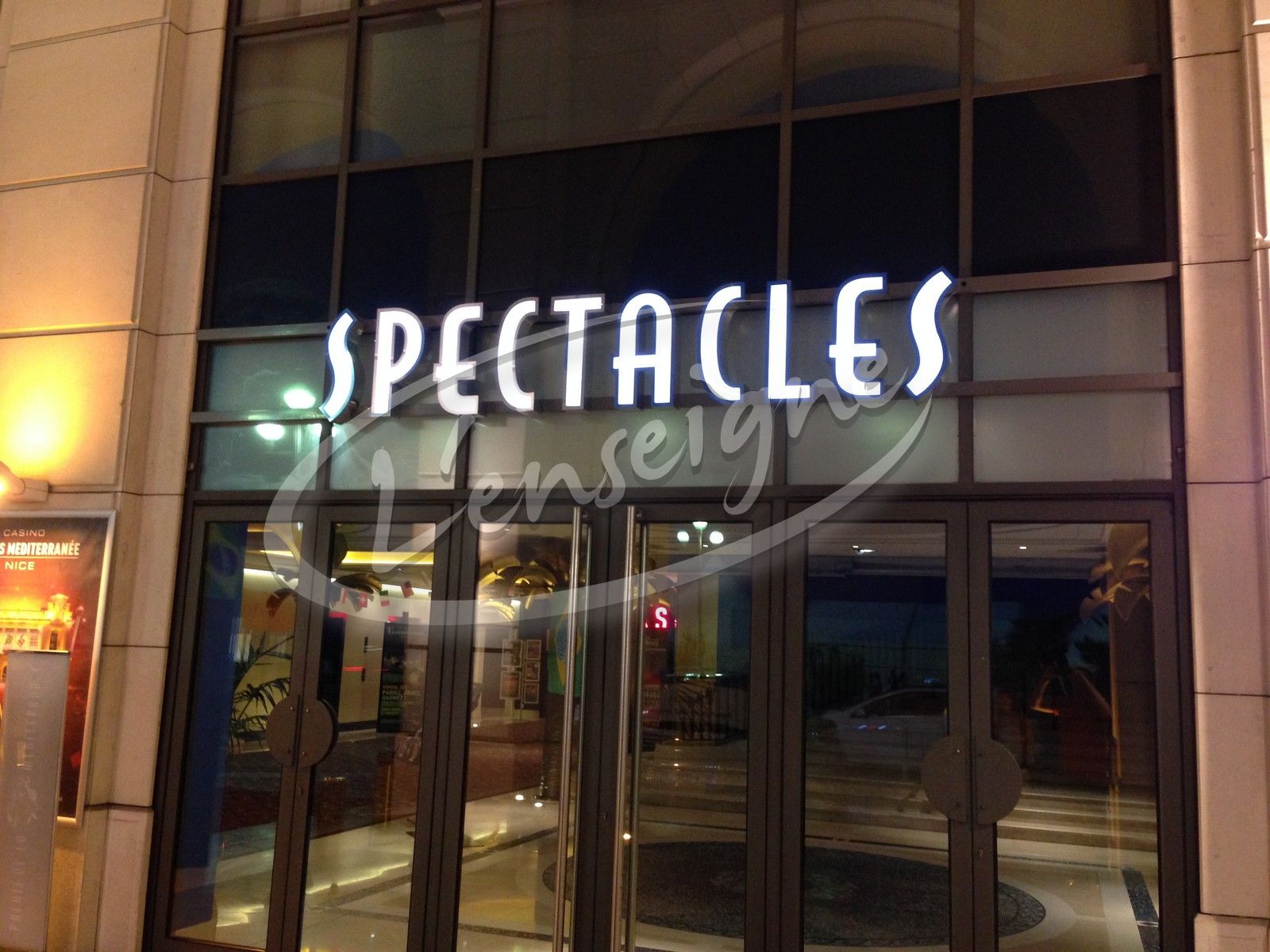 Pour le Casino du Palais de la Méditerranée à Nice nous avons réalisé des textes en inox poli miroir avec faces lumineuses.