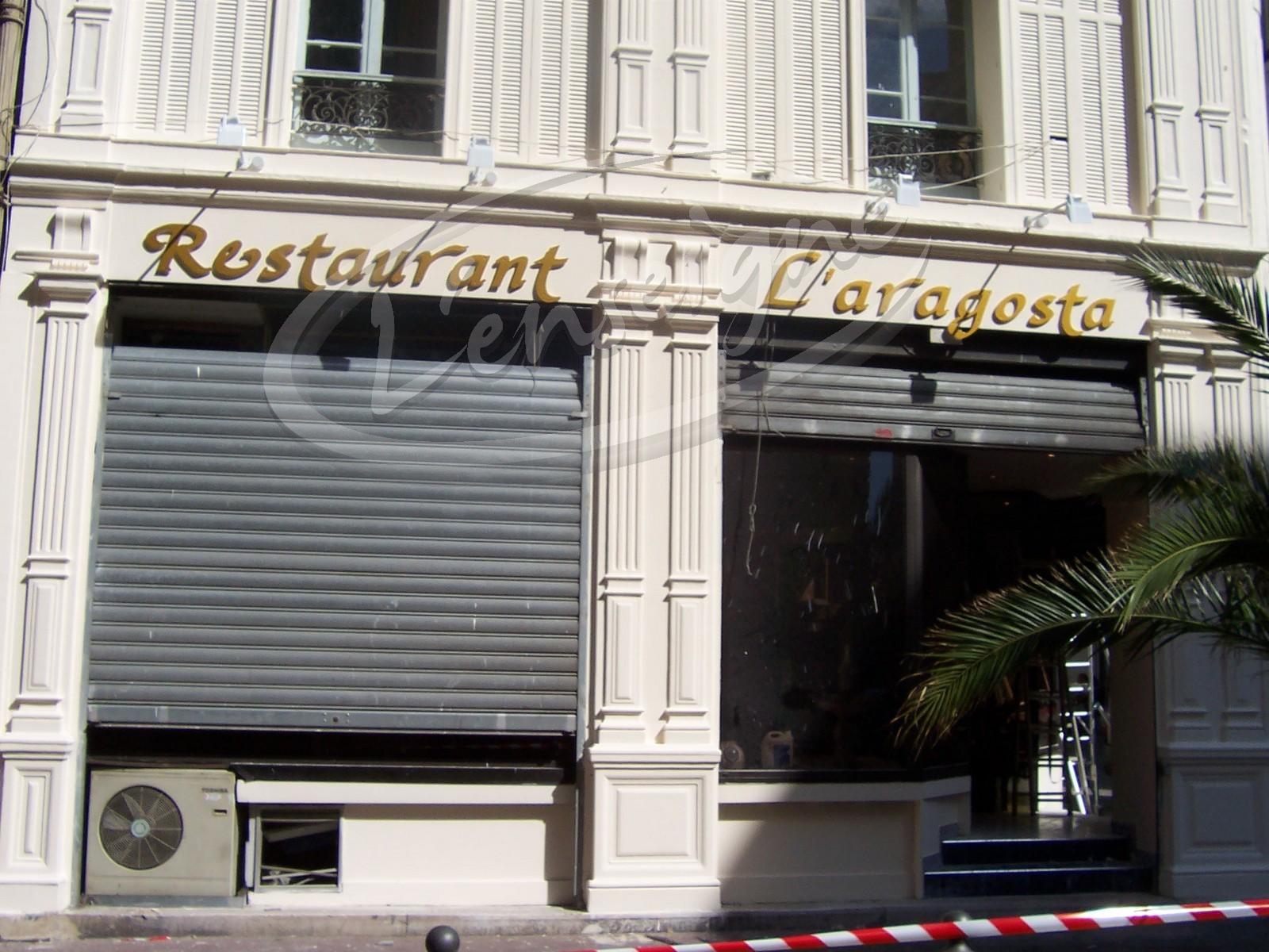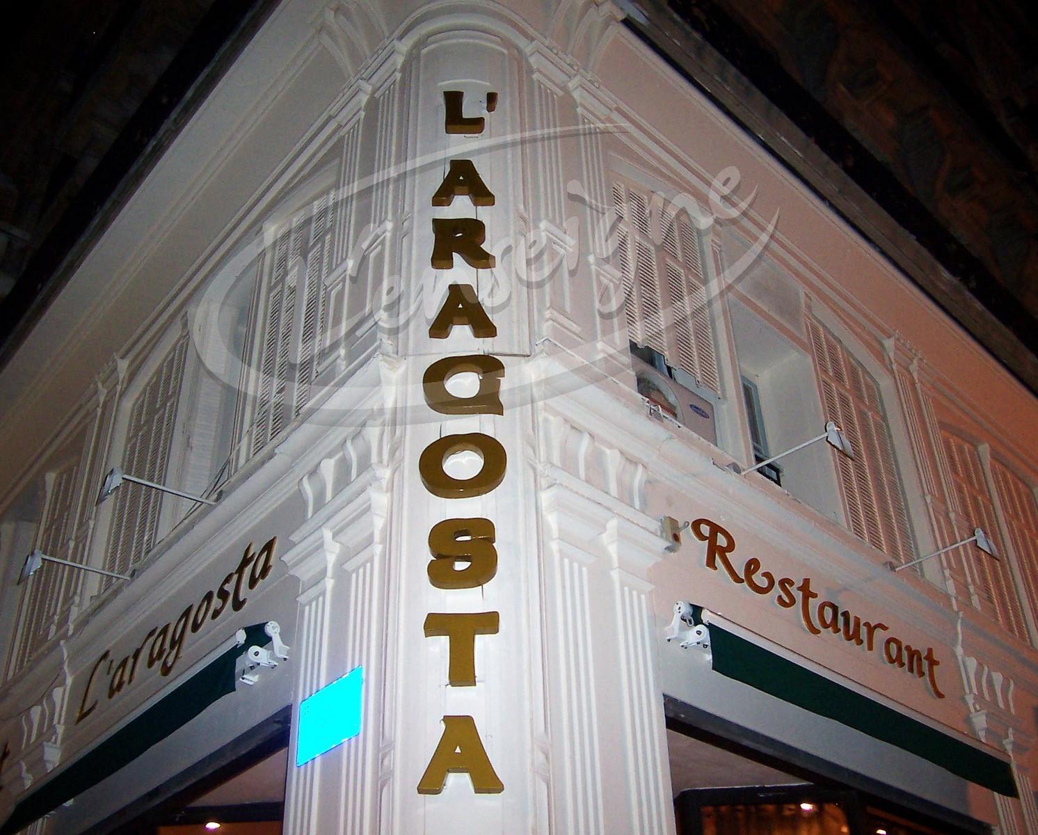 Pour une décoration extérieure chic et épurée, Le Restaurant L’Aragosta a suivi les conseils de L’Enseigne et a opté pour des lettres en reliefs en aluminium laqué or apposées sur les différentes façades de son établissement.