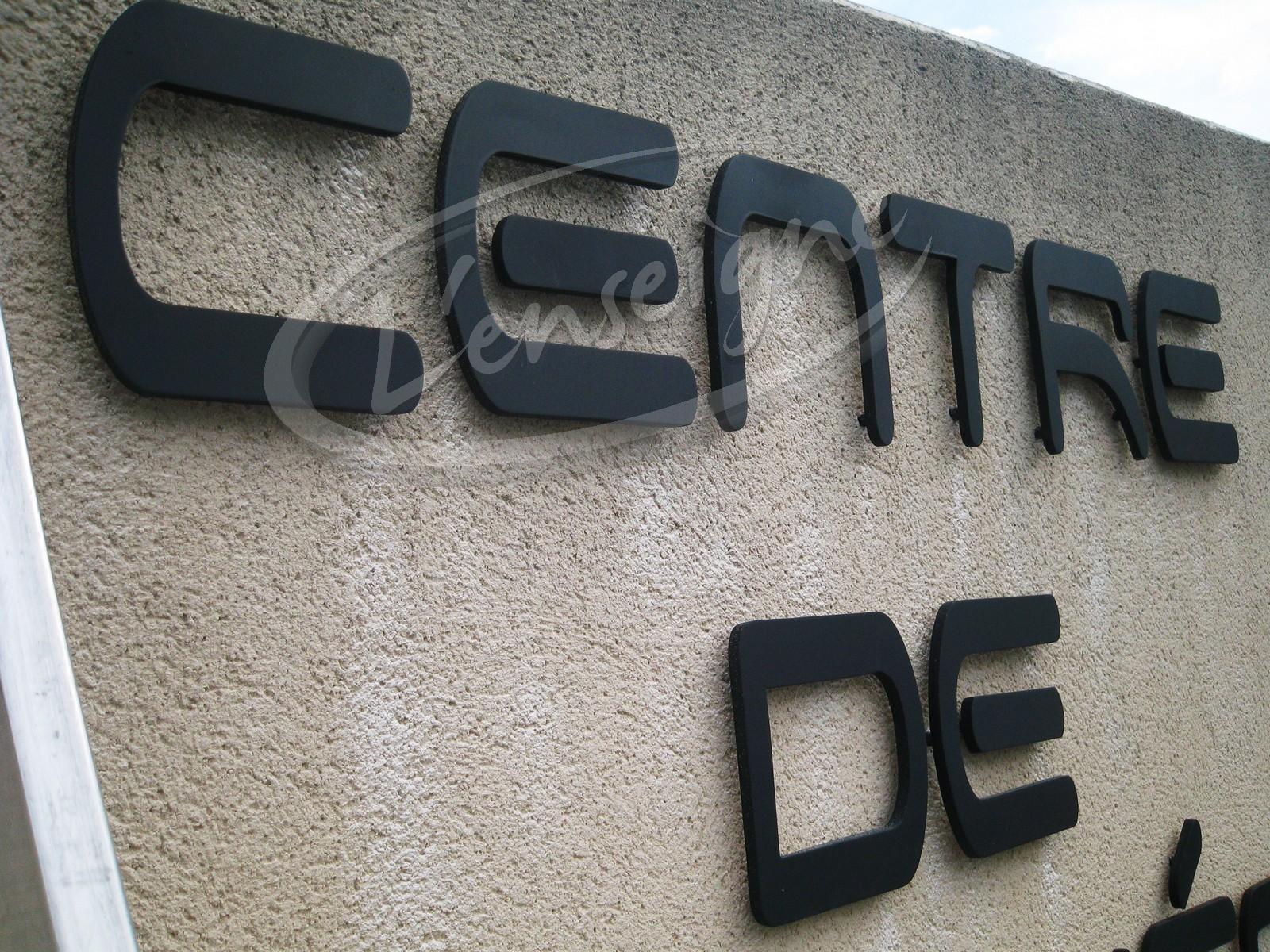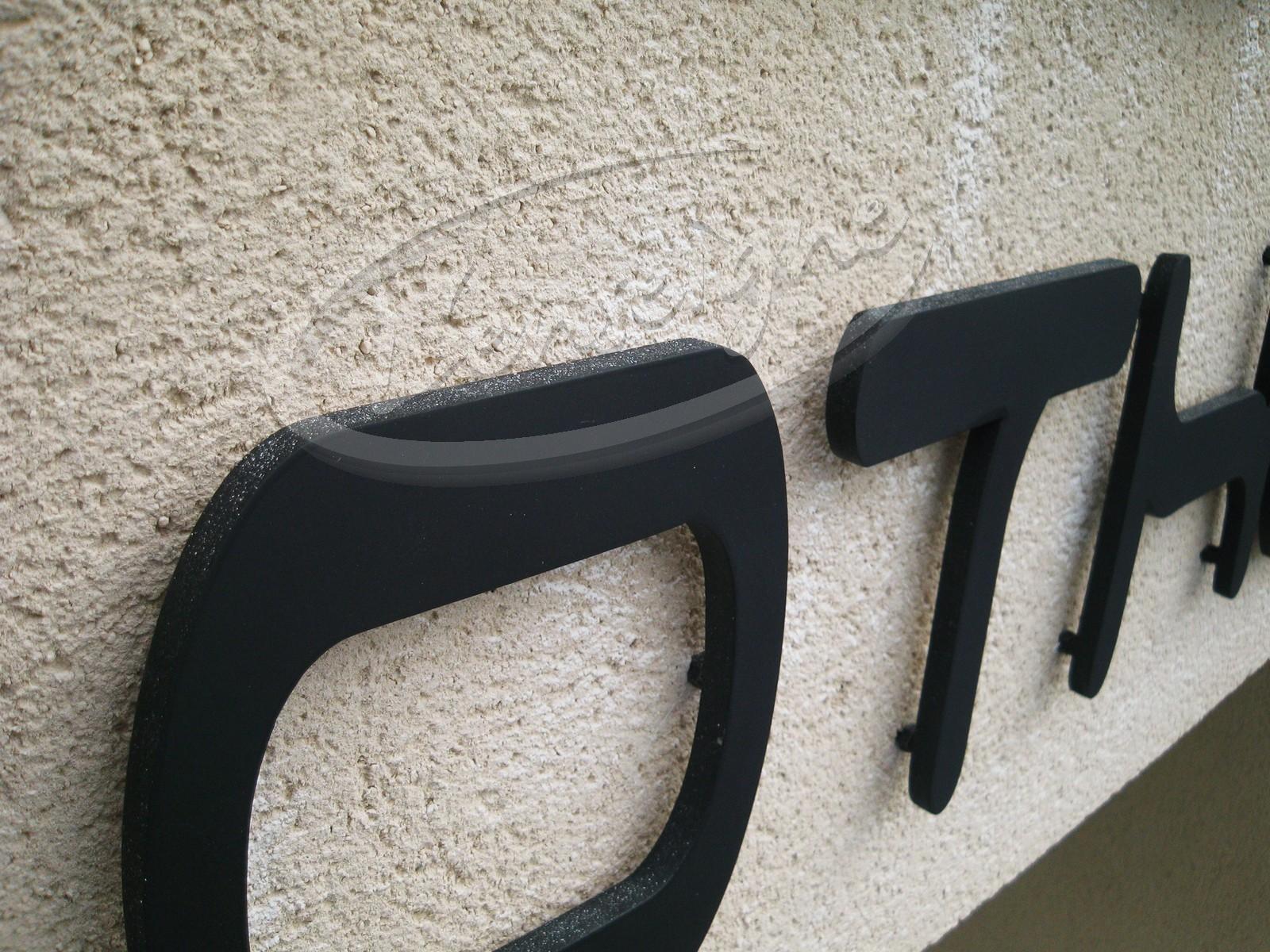 Cette enseigne non lumineuse est constituée de lettres reliefs laquées noires.