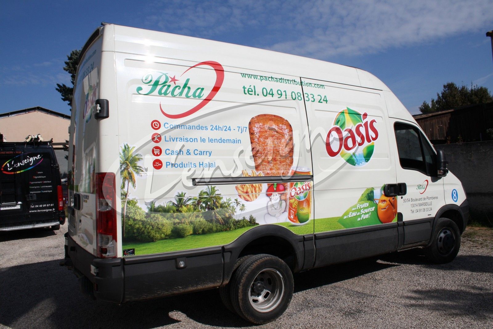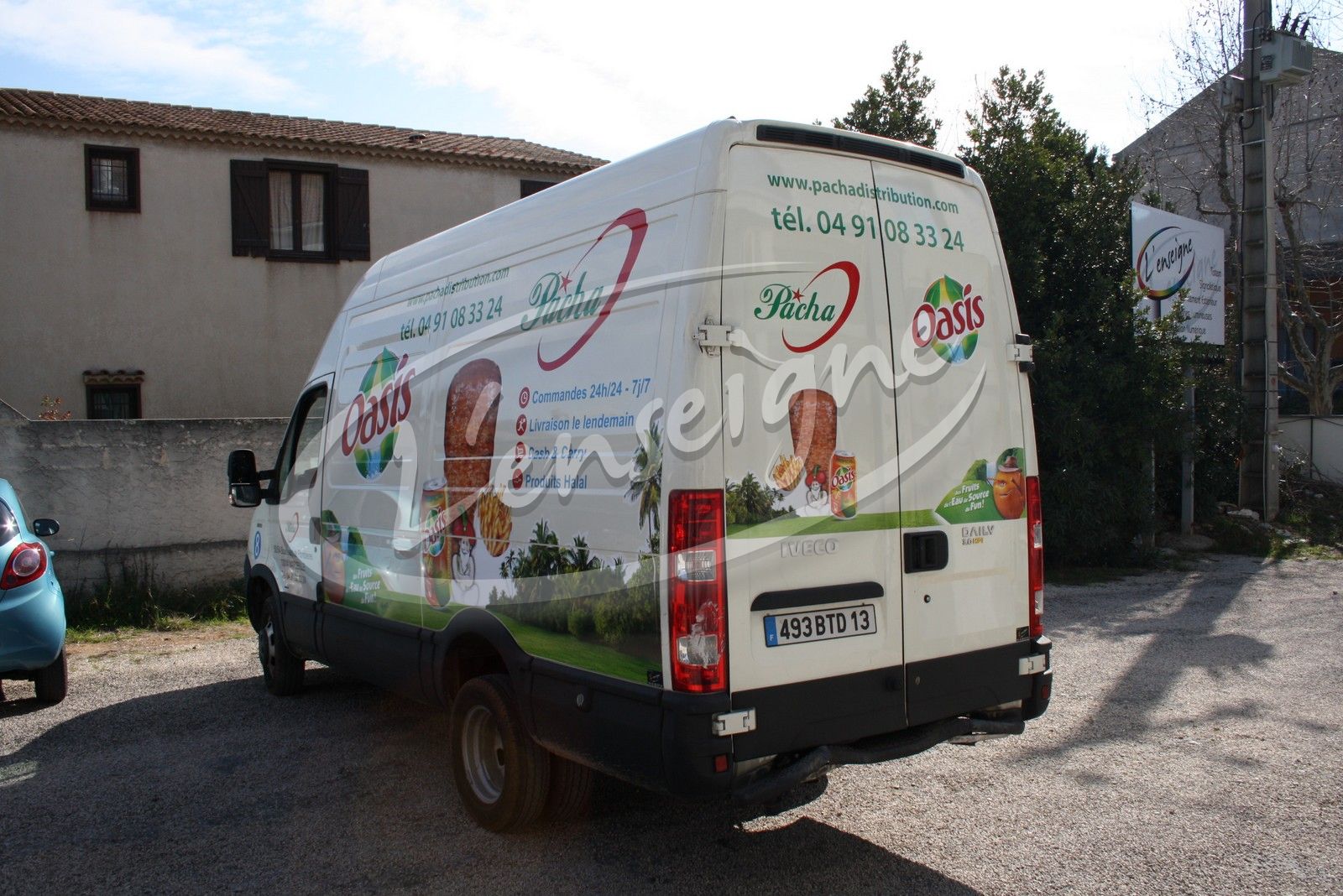 L'Enseigne à Martigues a réalisé pour la société Pacha Distribution le semi covering de ce véhicule utilitaire.