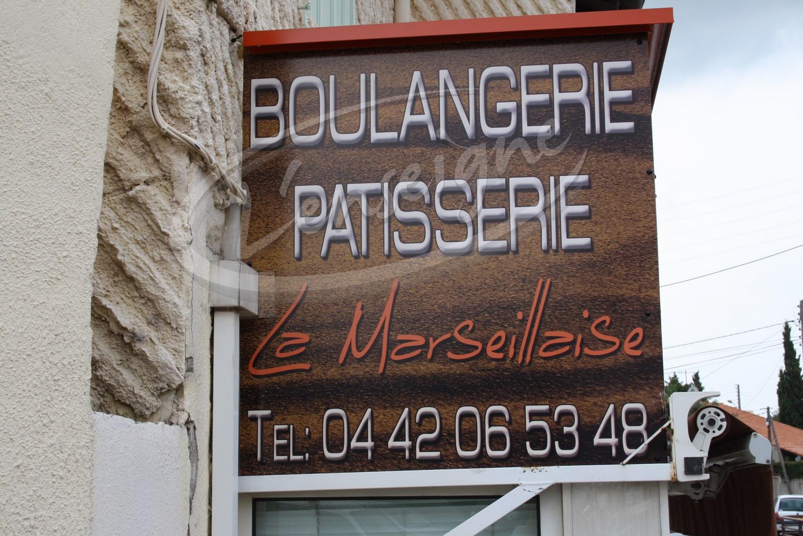 L'Enseigne a fabriquée et installée un panneau plat en dibond pour cette boulangerie à Port de Bouc.