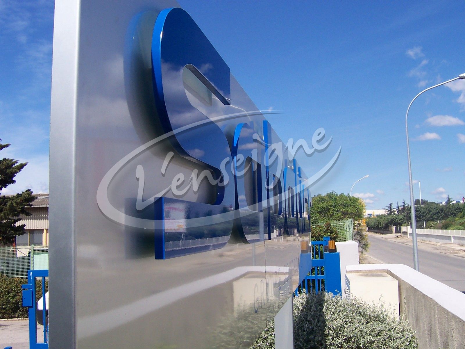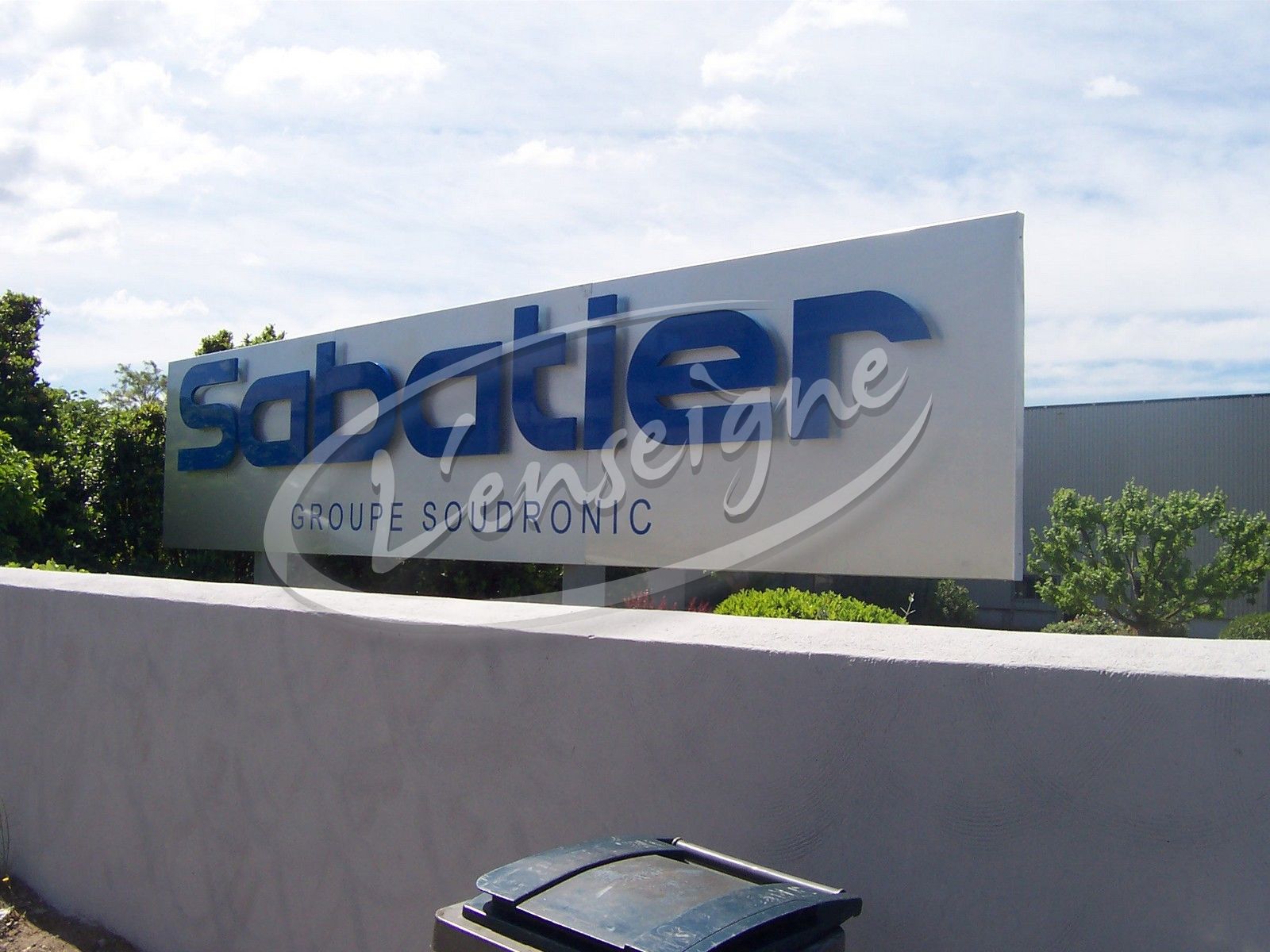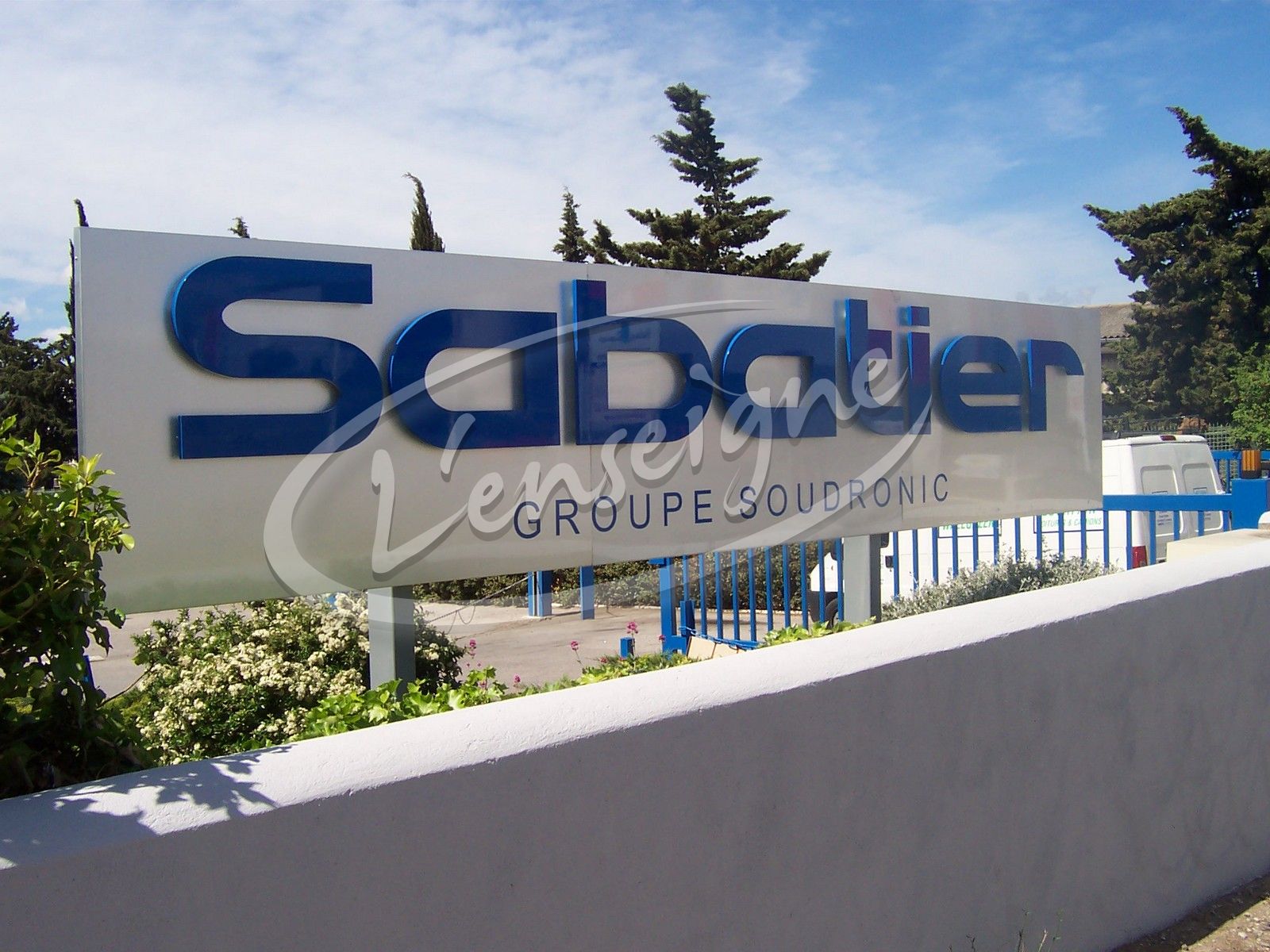 Pour la société Sabatier située à Vitrolles nous avons fabriqué et installé cette enseigne composée d'un panneau en tôle aluminium sur pied avec des lettres découpées et peintes.