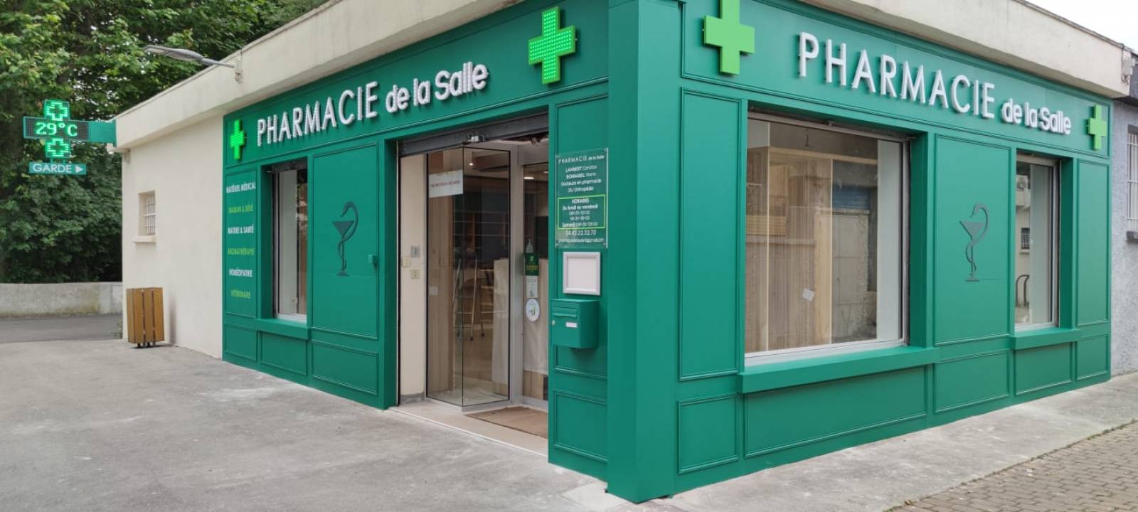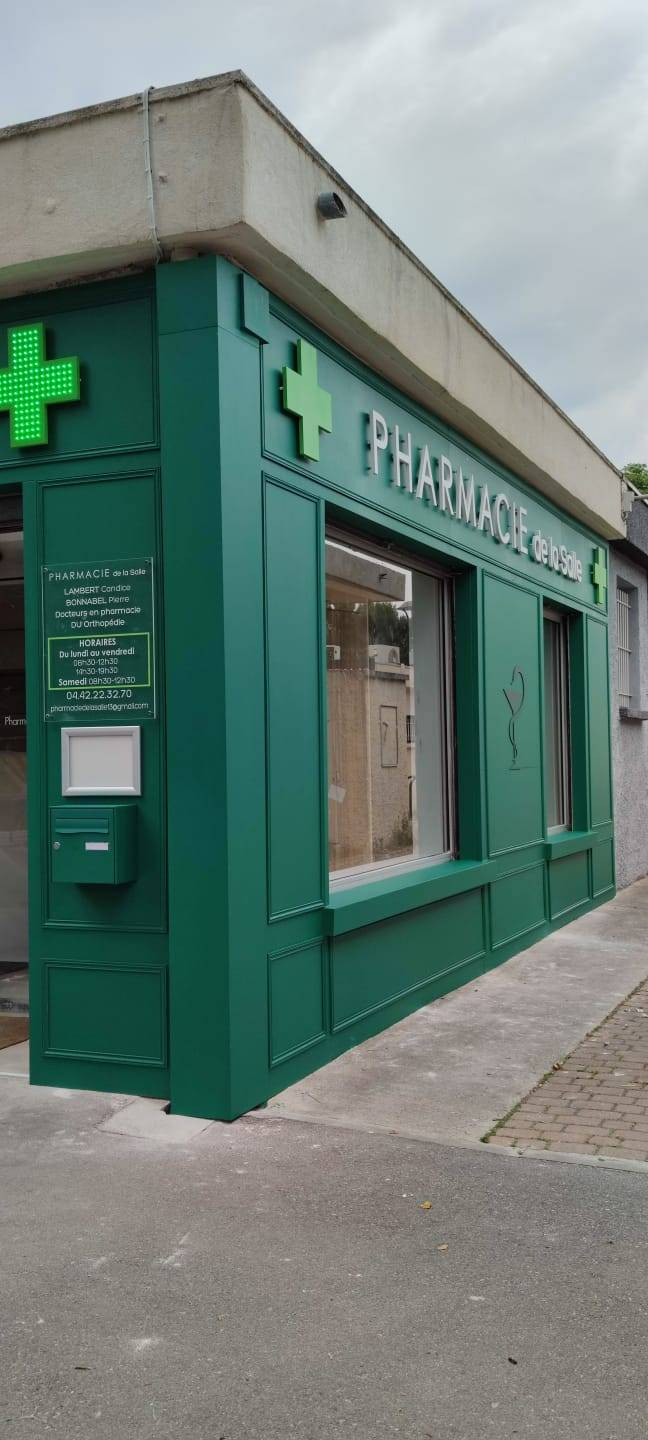 La Pharmacie de la Salle à Bouc-Bel-Air près de Gardanne nous a confié la réalisation de son habillage de façade avec encadrements.
