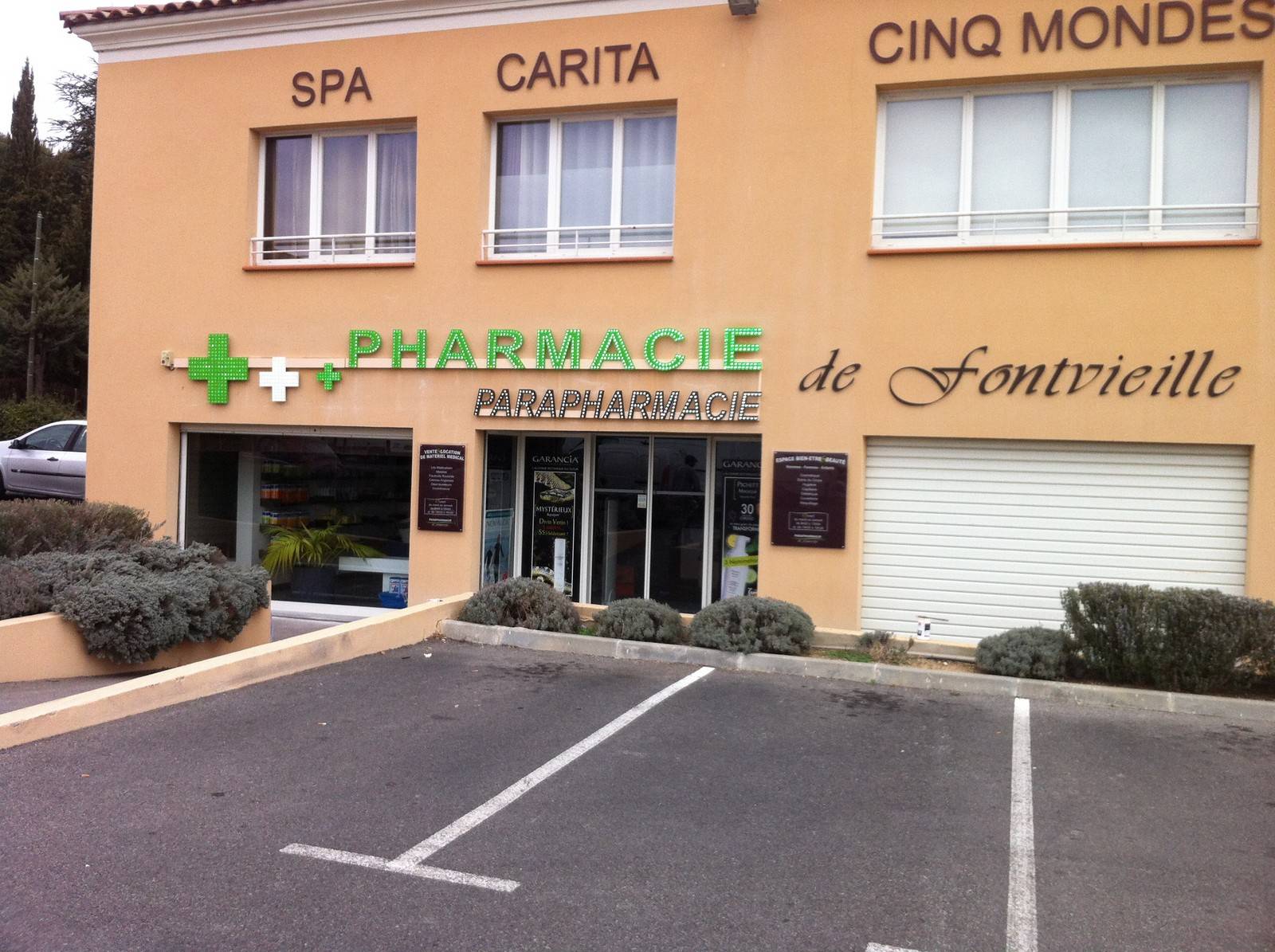 Pour la Pharmacie/Parapharmacie de Fonvieille à Allauch dans les Bouches-du-Rhône, l'Enseigne a repensé la signalétique extérieure et intérieure.