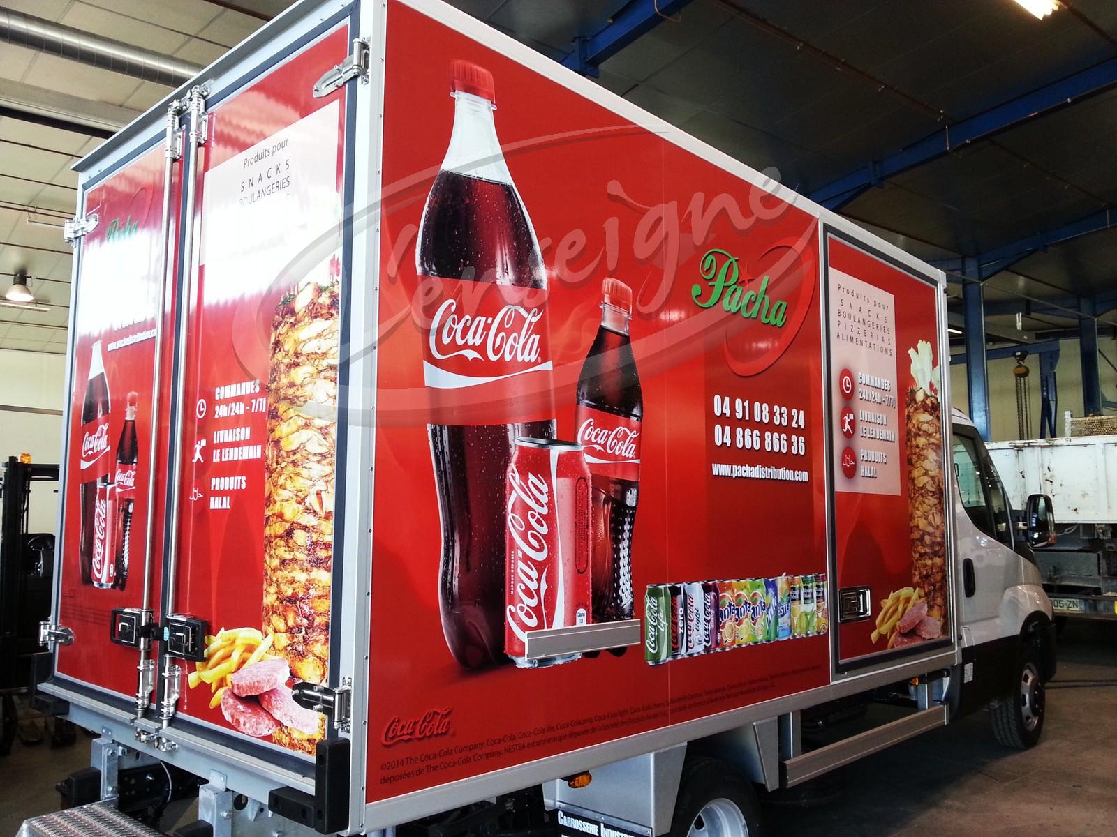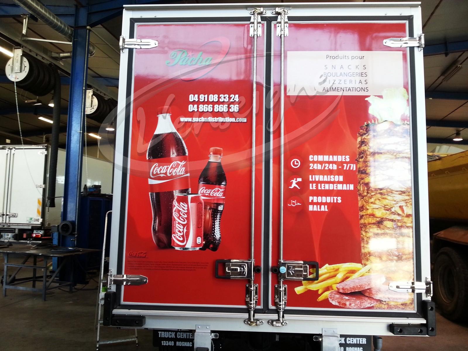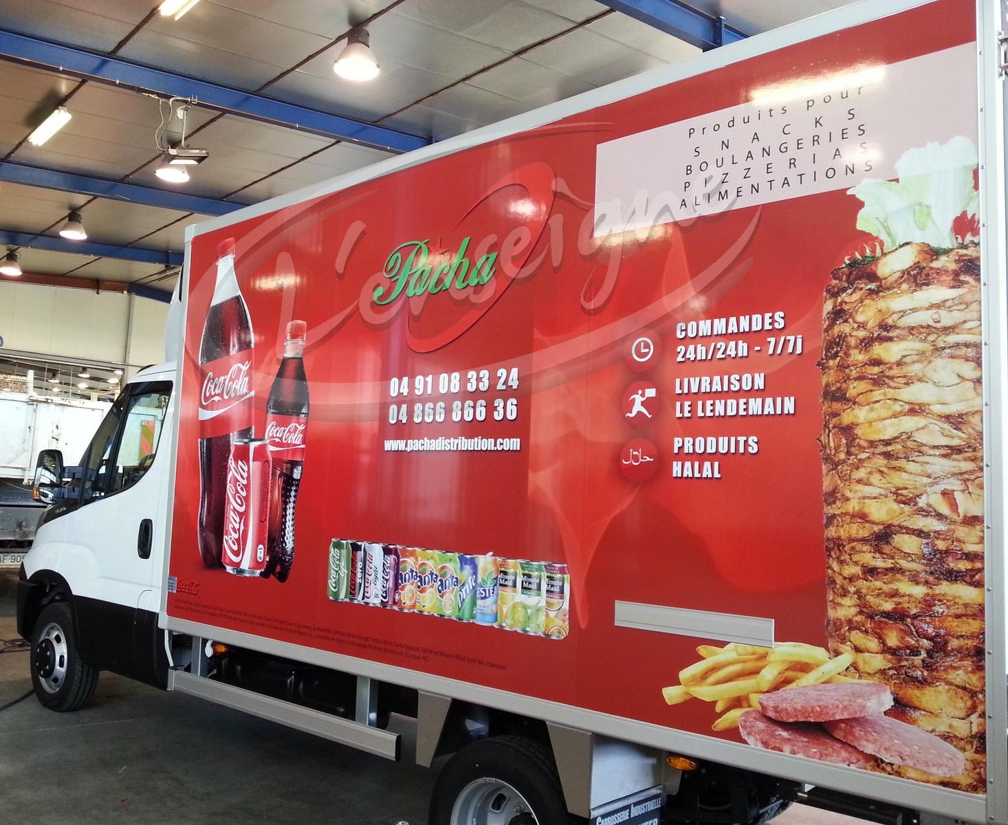 Pour la société Pacha Distribution, nous avons réalisé le marquage d'un camion frigorifique.