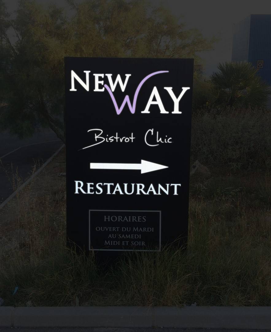 L'enseigne conçoit votre totem publicitaire avec texte lumineux.