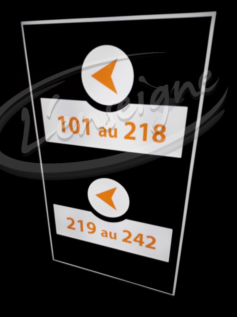 Ces totems signalétique sont en aluminium dibond brossé avec partie ajouré et contre-collage d'un plexiglas diffusant.